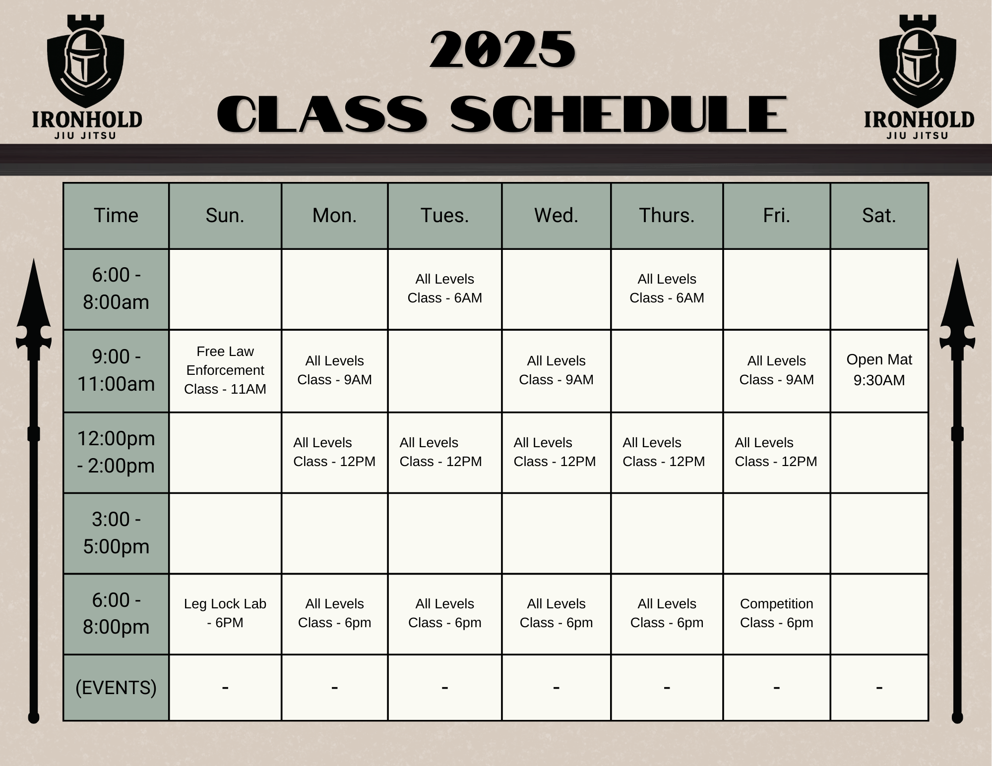 All Levels classes at 6:00 AM on Tuesday and Thursday.